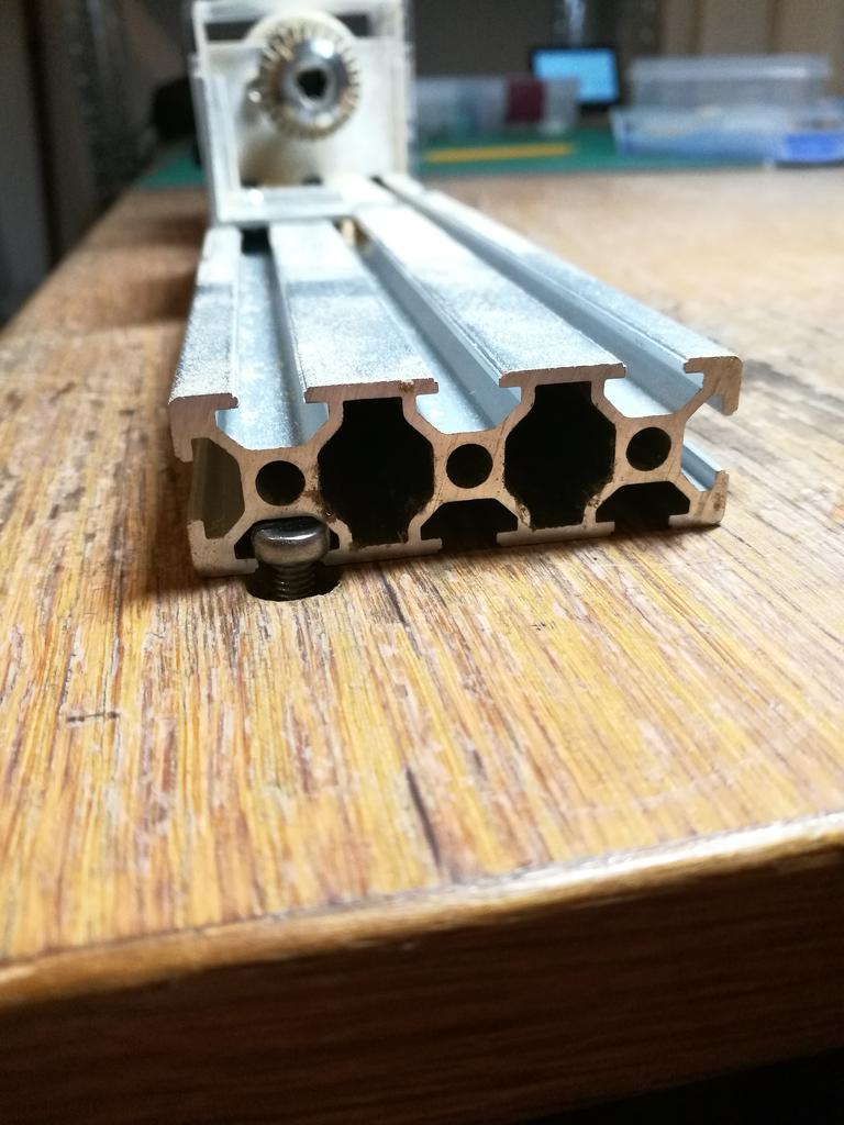 The t-slot aluminium slides onto the bolt heads, and then can be tightened down to the bench surface by the nuts underneath.